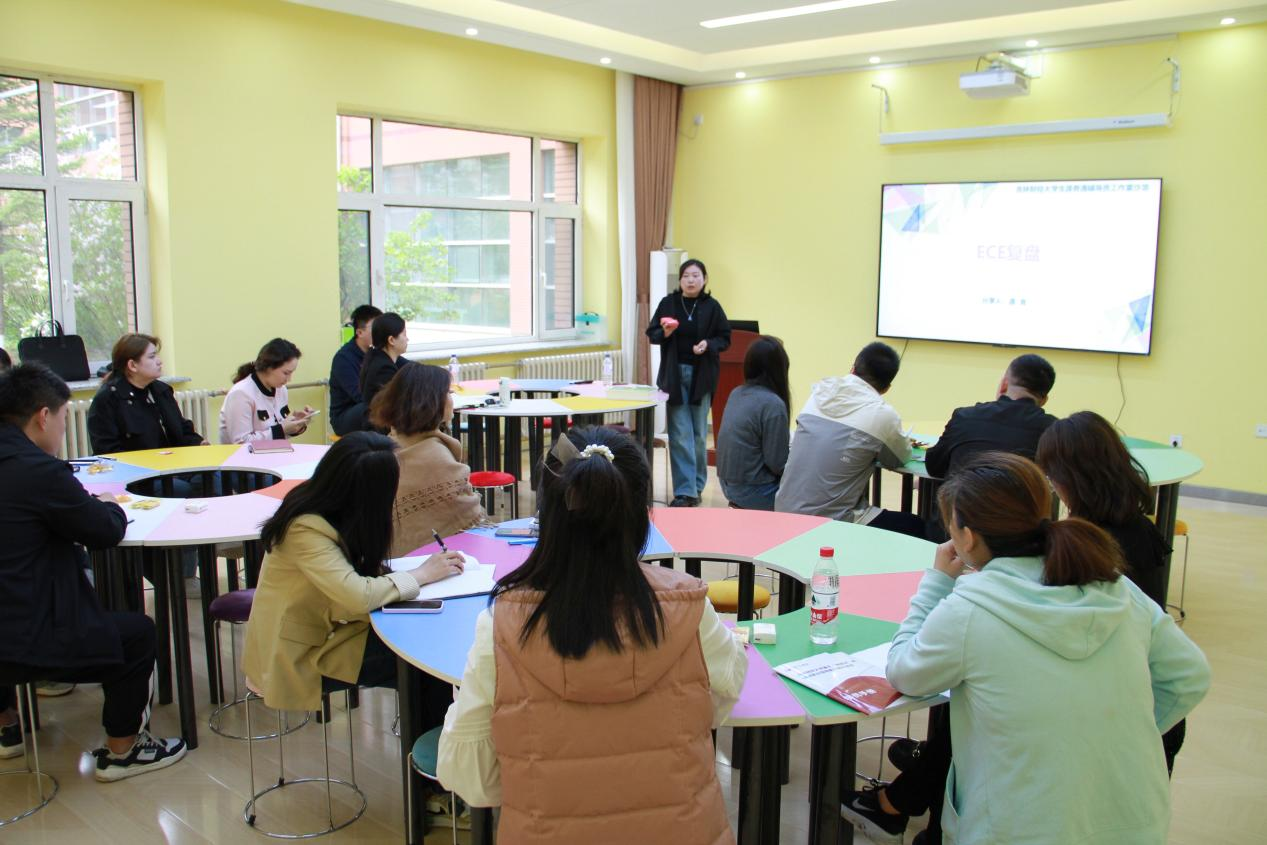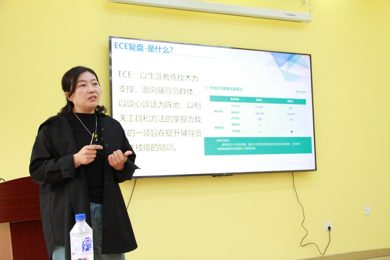 她首先从“ECE是什么、讲什么、有什么、学什么、如何用”五个方面带领辅导员们系统复盘了ECE的核心内容、技能方法和应用场景。通过归纳总结、举例说明等方式,围绕“理念、倾听、问询、工具”四个部分在实际应用中的重要性及实效性进行讲解,为辅导员开展实际工作提供了宝贵经验,大家纷纷表示受益匪浅。