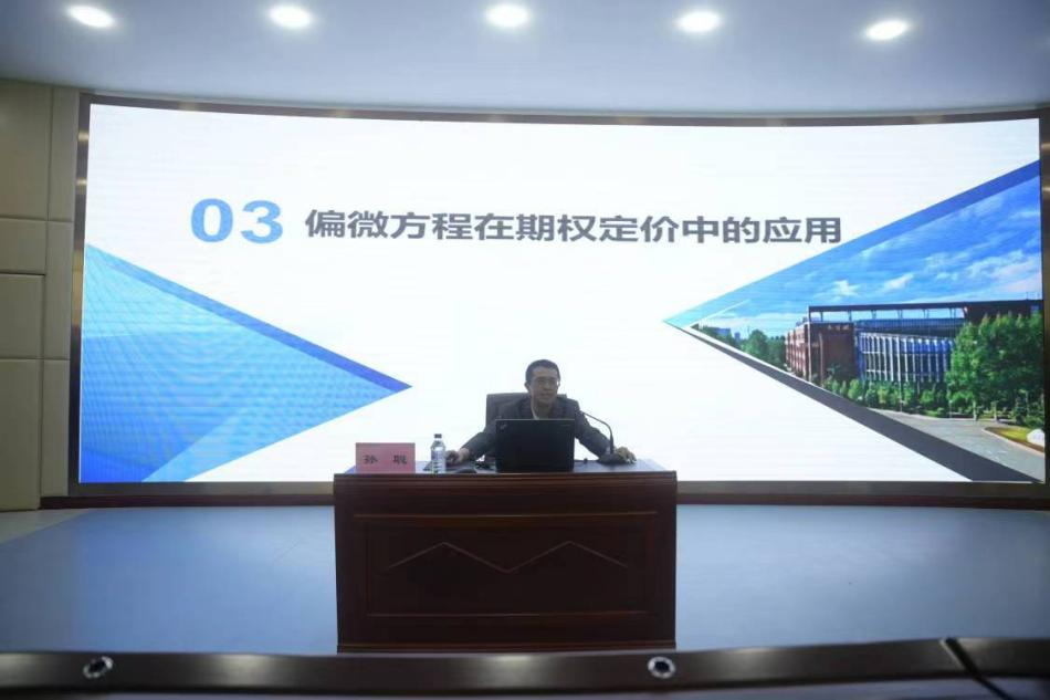 本网讯(科研处 供稿)为促进学术交流,推动学术研究,激发全校师生的学术热情,5月8日下午,应用数学学院副教授孙聪受邀为“吉财善水讲坛”第十四期做了题为“偏微分方程理论在金融研究中的应用”学术讲座。讲座由应用数学学院副院长王慧敏主持,应用数学学院院长李秀玲、副院长李文金、科研处副处长张东敏及应用数学学院全体师生参会。