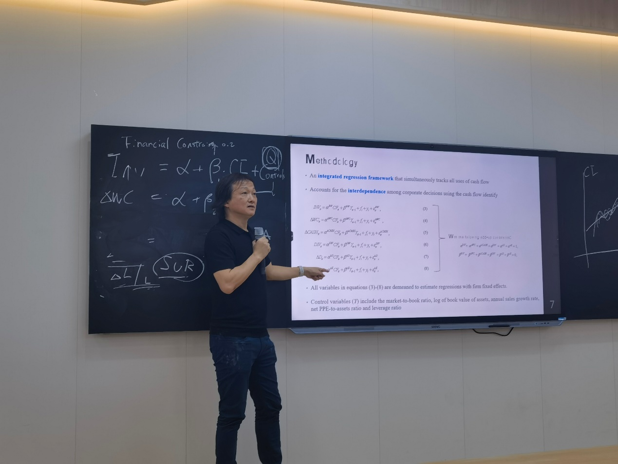 常鑫教授深入剖析了企业现金流的六种主要用途,并揭示它们对现金流敏感性的时间趋势。本次报告不仅内容前沿,同时也展现了高水平学术论文的写作框架和研究范式。报告结束后,常鑫教授与学院师生展开了热烈的交流与讨论,耐心细致地解答了师生们提出的问题。