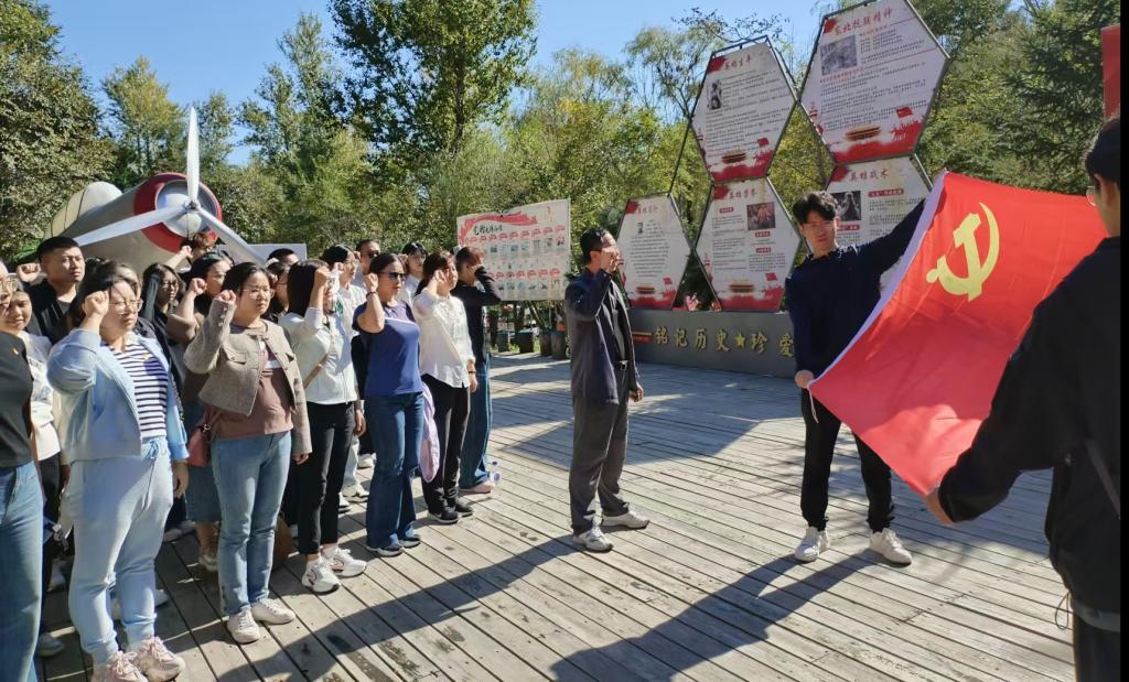 在长春莲花岛红色教育基地,党员师生重走了东北抗日联军的行军路线,参观了杨靖宇烈士纪念碑,并重温了入党誓词,表达了继承革命先烈遗志,为实现中华民族伟大复兴而奋斗的决心。全体师生还观看了《抗联抗联》大型室外抗战实景剧,感受了吉林地区人民在抗日战争期间不屈不挠的斗争精神。