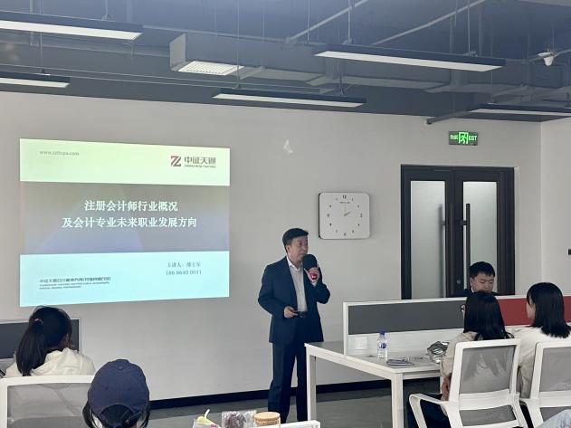 中证天通会计师事务所(吉林分所)邢士军所长,为大家做了关于注册会计师行业概况及会计专业未来职业发展方向的分享。邢所长介绍了会计专业的职业定位、社会定位及社会价值,讲解了会计专业的主要就业方向——企业会计、金融机构、专业教师、公务员等。随后项目经理杨岭,通过讲述自己的亲身经历,为大家提供CPA考试经验,希望通过此次活动让同学们在今后的备考路上少走弯路。会计学院财务管理专业2022届校友罗玲,现为审计助理,分享了其在两年的工作中的收获和工作感悟,并且表达了对母校的授业感恩之情。
