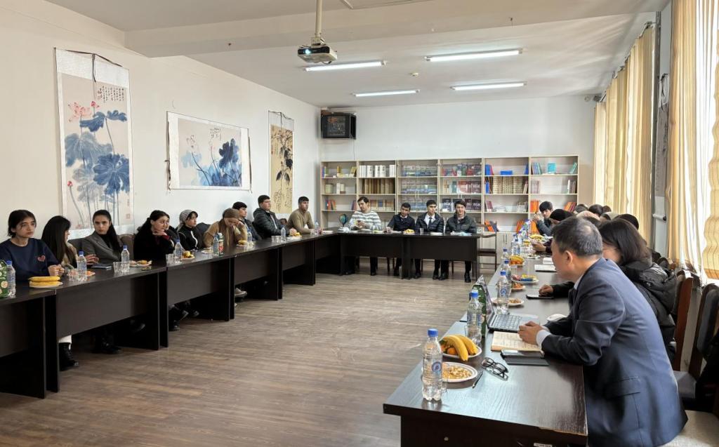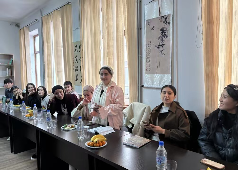俄罗斯-塔吉克(斯拉夫)大学师生代表、塔吉克斯坦民族大学孔子学院教师代表、塔吉克斯坦中国企业商会代表以及taptap点点国际经济贸易学院俄语教研室主任张欣欣、俄英双外语创新班2422班全体同学参加了交流会。见面会由唐静主持。(审核人 关嘉麟)