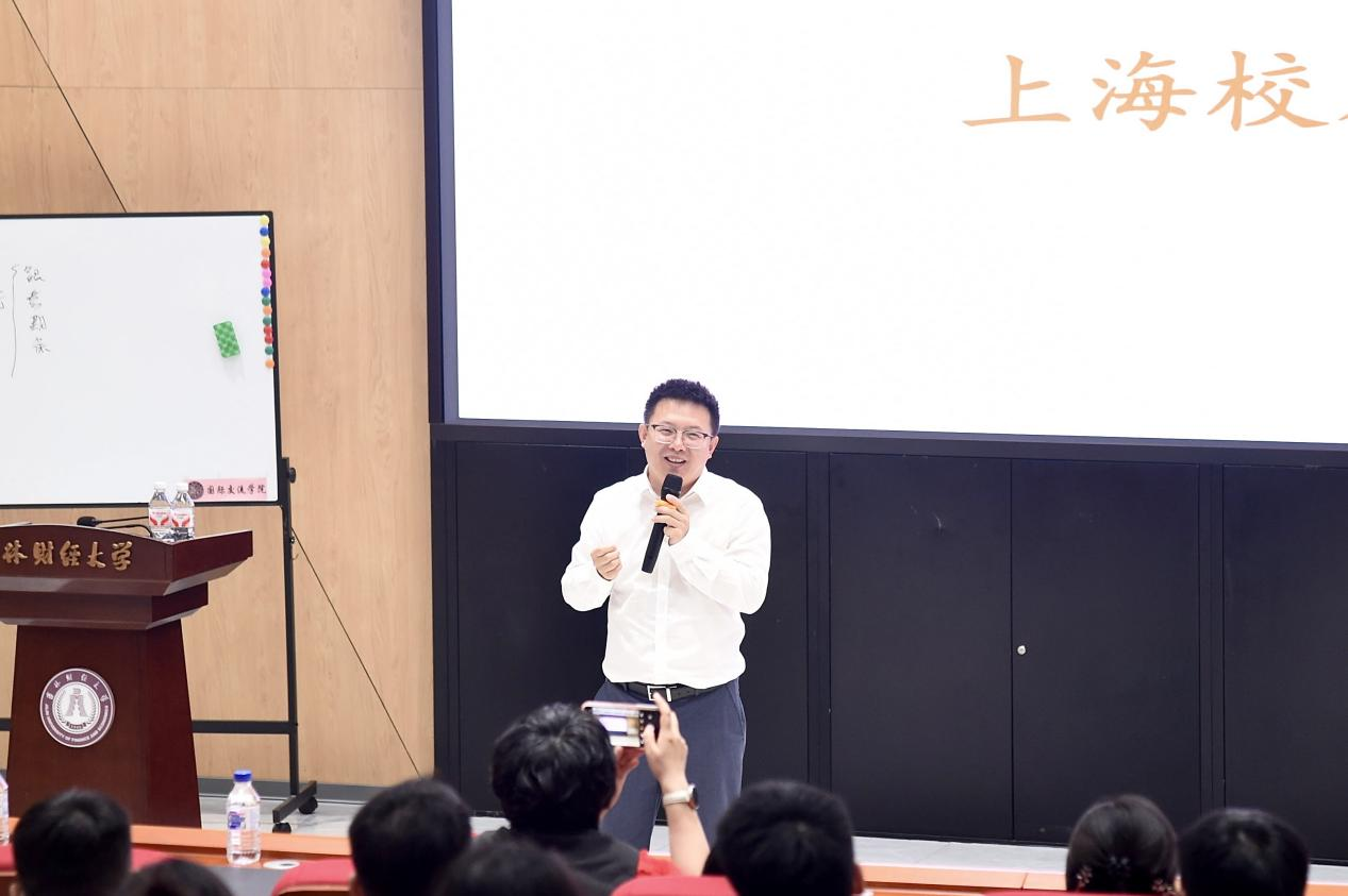 李由详细介绍上海校友会的整体情况,并结合多年职场经验,分析了行业以及当前就业形势。他从就业思想转化、就业创业自我定位等方面,勉励大学生要转化就业思想、明确自我定位、提升就业综合能力。
