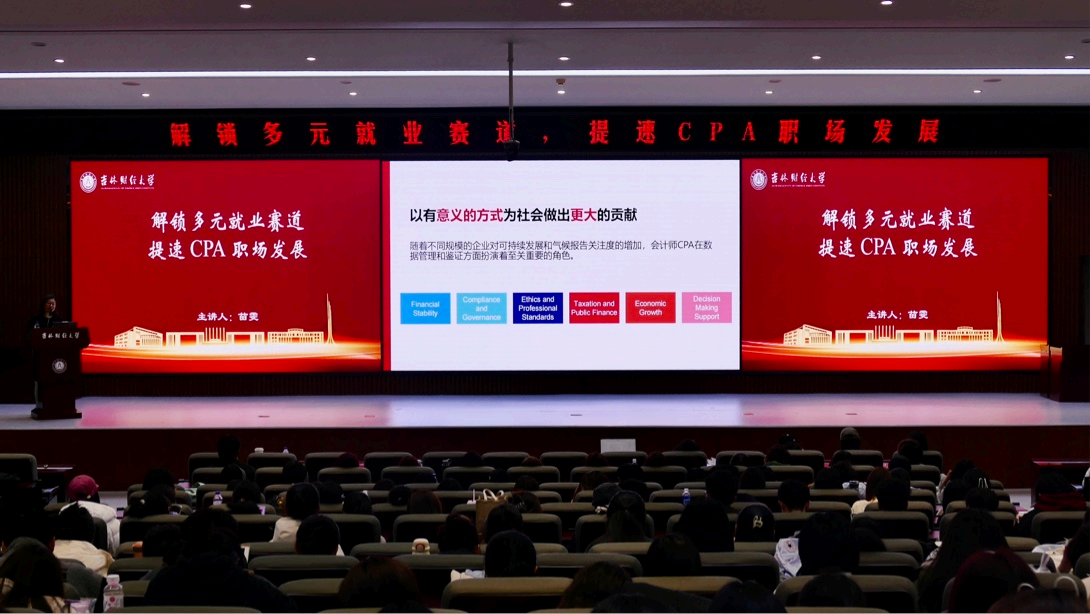 本网讯(会计学院 供稿)为帮助会计学院学子深入了解行业动态,明晰职业发展方向,深入了解香港注册会计师资格认证优势,10月16日,会计学院举办“解锁多元就业赛道,提速CPA职场发展”专场讲座,邀请香港会计师公会助理经理苗雯女士作专题报告。