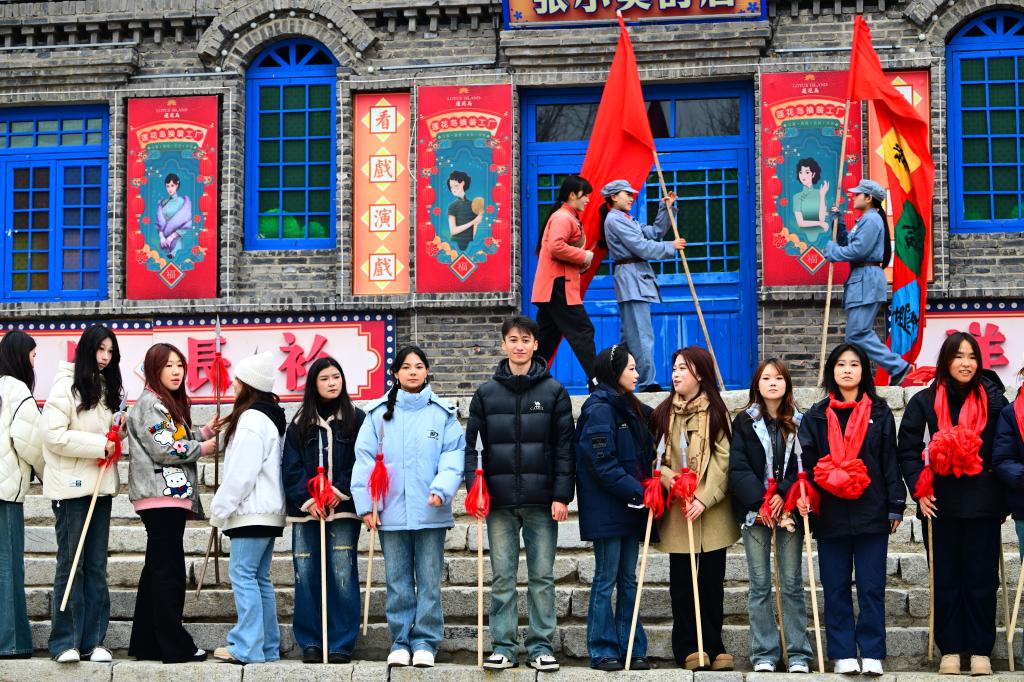 师生们集中观看了《跟着抗联打鬼子》《抗联志》《这是长春1948》三部红色主题演出。沉浸式的场景与动人的演绎,生动再现了东北抗日联军在极端艰苦的条件下,坚守阵地、奋勇抗敌的壮阔历程。杨靖宇、赵尚志等抗联英雄“冰天雪地食草棉,誓死不降报国魂”的壮烈事迹,展现了他们为民族独立、人民解放,不畏强暴、英勇斗争的钢铁意志,以及各民族同胞团结一致、共御外侮的深厚情谊。