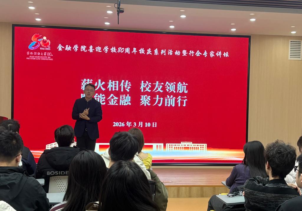 本网讯(金融学院 供稿)为庆祝学校建校80周年,拓宽学生行业视野、明晰职业发展方向,金融学院举办“薪火相传、校友领航,赋能金融、聚力前行”系列行企专家讲坛。3月10日,学院邀请1999级校友、国泰海通证券高级专家李钢重返母校,作题为“从形到心的修炼——成长经历与金融行业思考”的报告。