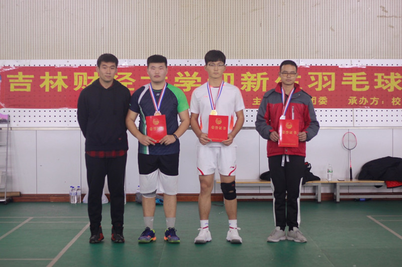 历经两天的实力比拼,最终,获得本次比赛男单季军的是外国语学院常仁邦,获得本次比赛男单亚军的是九台农商银行金融学院简呈津,获得本次比赛男单冠军的是经济学院江炳宏。获得本次比赛女单季军的是亚泰工商管理学院邵斯涵,获得本次比赛女单亚军的是九台农商银行金融学院许瀚文,获得本次比赛女单冠军的是经济学院郑薇薇。获得本次比赛男女混合双打季军的是统计学院王艺钧、董上铭,获得本次比赛男女混合双打亚军的是外国语学院常仁邦、邱淑华,获得本次比赛男女混合双打冠军的是经济学院黄子韬、郑薇薇。