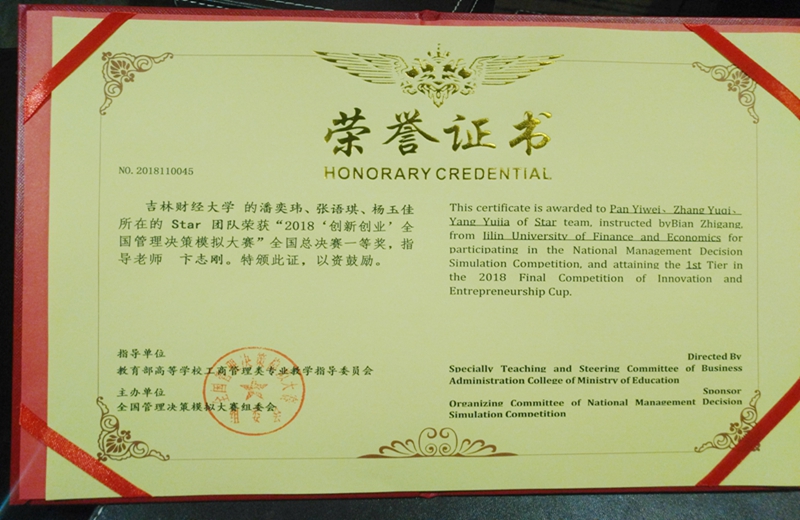 本届比赛自启动以来,得到了全国700多所高校的积极响应,吸引了31000多只队伍参赛。最终90多支队伍闯入全国总决赛。在亚泰工商管理学院领导和老师的指导与支持下,由学生潘奕玮、张语琪、杨玉佳组成的队伍获得全国一等奖。(审核人 李福平)