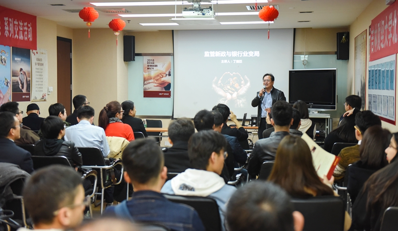 本网讯(北京校友会 供稿)11月3日,taptap点点北京校友会校友大讲堂“金融专题”演讲圆满结束。吉财79级知名校友、对外经济贸易大学金融学院教授、博士生导师丁建臣受邀作了《监管新政与银行业变局》主题演讲。