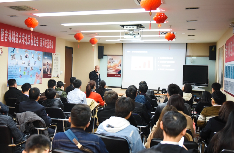 与以往大讲堂略有不同的是,本次讲演吸引了近70余名在京吉财校友、原吉林工业大学校友以及少部分吉大校友参加,他们来自金融、汽车、法律等各个行业,大多与金融资本紧密相关,与本次讲演主题高度契合。