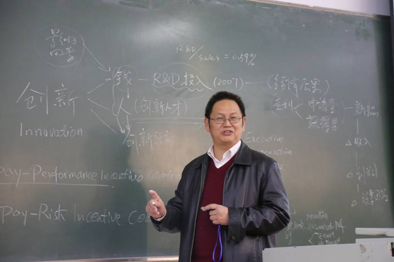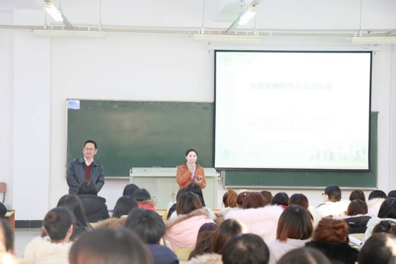 刘教授从企业创新(INNOVATION)谈起,引出企业高薪聘请创新人才来进行创新活动,建立完善有效的激励机制调动管理层的创新投资积极性很重要,而且薪酬粘性这一现象在公司治理较好的发达国家广泛存在。刘教授生动形象地向大家展示了创新在企业中不可或缺地作用,高管薪酬粘性与企业创新投资地正相关作用、高管薪酬粘性的类型、以及不同类型的粘性与企业创新投资效率关系等内容,得出了在企业业绩下降时对高管轻罚甚至略有奖励能促进创新投资,且在非国企和高科技行业更为显著。他采用案例研究的方式,毫无保留地为师生分享该案例的研究背景、研究假设、研究问题、研究方法、研究结论这一整个过程,使大家对研究案例有了更加深刻具体的认识,为学生今后的学习研究以及未来的工作提供了学习借鉴机会。刘教授用自己的经验和学识为大家答疑解惑,会后,在座师生与刘教授就高管薪酬粘性与企业创新进行了热切的交流,对学生论文研究、日后的工作管理有很大助益。(审核人 李金富)