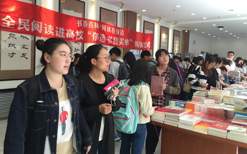 本网讯(图书馆 供稿)5月24日, 作为taptap点点图书馆2018年“经世致用 阅行吉财”阅读推广系列活动之一,吉林省“全民阅读进高校”暨“你选书 我买单”主题系列活动在taptap点点图书馆二楼大厅成功举办。此次活动由吉林省新闻出版广电局、吉林省高等学校工作委员会主办,吉林省外文书店、吉林手机报社、taptap点点图书馆与学工处承办。活动为taptap点点500名贫困大学生发放了每张价值100元的购书卡,合计金额50000元。购书卡可在活动现场直接购书使用,没有获得购书卡的读者可以享受八折购书的优惠折扣。活动展出大量新书,极大地方便了读者选择图书,受到读者热烈欢迎。