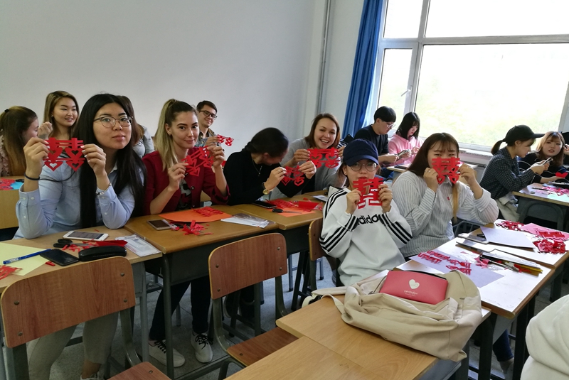 在文化体验课上,留学生不但了解中国文化,而且动手制作了很多作品。在2017年12月吉林省教育厅主办的“关东风•世界情•感知吉林,中外文化成果展”活动中,韩国留学生金志修的书法作品《对联》、俄罗斯康斯坦丁制作的京剧脸谱《花脸》、日本宫林翔太的《京剧的假面》、金泽友理的剪纸《福到》获得了荣誉和证书。