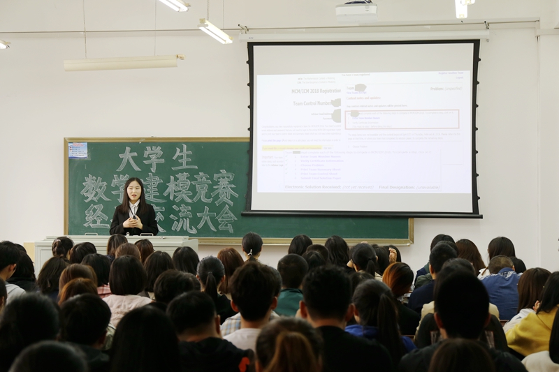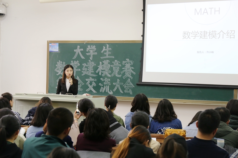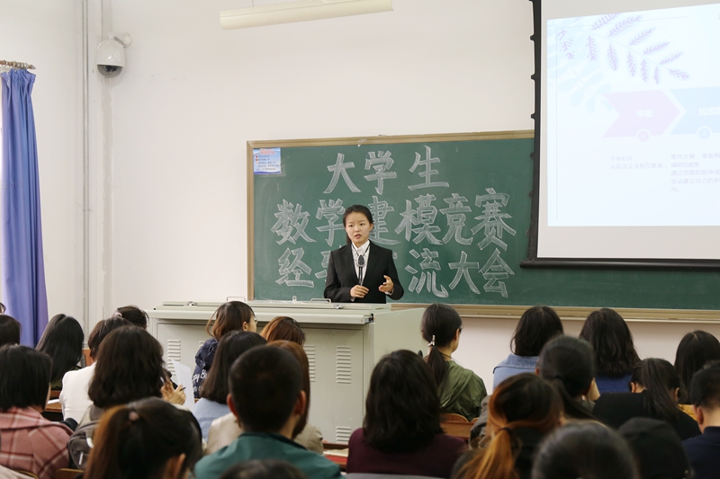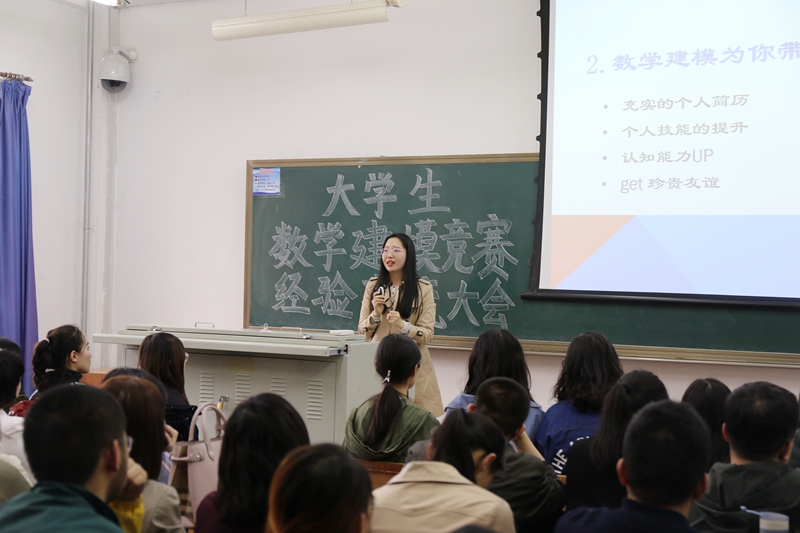 报告会上,应用数学学院2015级学生葛梦迪、成铭、张晗,亚泰工商管理学院2016级学生曹小楠4名学生分享了她们在数学建模学习和参赛过程中的经验和心得体会。这4名学生在美国大学生数学建模竞赛、“挑战杯”、“深圳杯”和“中青杯”全国大学生数学建模竞赛、吉林省大学生数学建模竞赛中多次获奖,有着丰富的参赛经验。获得美赛国际三等奖、国赛国家二等奖的葛梦迪同学介绍了国内外不同类型建模竞赛的参赛方式,参赛前在数学模型和建模软件学习等方面的准备,并根据个人参赛经历给出参赛过程中的建议。获得美赛国际二等奖、国赛省级一等奖的成铭同学介绍了各类竞赛的差异,赛前在队员、教材及软件等方面的准备,并就竞赛中选题方法、数据处理、模型建立、论文写作等方面进行了详细介绍,分享了数学建模竞赛对能力和素质的提高、考研和就业的帮助等心得体会。获得美赛国际二等奖、国赛省级二等奖的张晗同学结合历届美赛、国赛和省赛的具体赛题从知识储备、建模工具、经典算法和注意事项等方面进行了详细的阐述,并分享了个人在数学建模竞赛中的收获。获得国赛国家三等奖的曹小楠同学就赛前准备、心得体会以及数学建模竞赛对参加全国大学生创新创业大赛的积极作用进行了介绍。