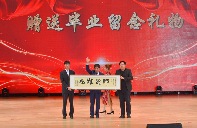 毕业典礼首先进行表彰仪式,表彰了四年间台前幕后,默默奉献的优秀学生干部;锐意进取,追求卓越优秀毕业生;创先争优活动中表现突出的优秀团员,优秀团干部,优秀团支部并授予考取国内外研究生的93名同学继续深造奖。李金富书记代表全体教师上台接受了2019届毕业生向学院赠送的毕业留念礼物“师恩难忘”牌匾。同时毕业生党员代表也为学弟学妹赠送了自己的书籍,希望同学们用心学习,不负韶华。