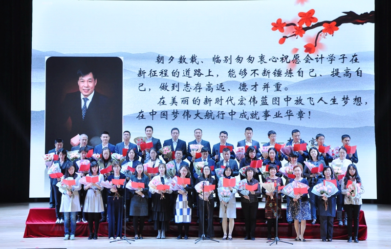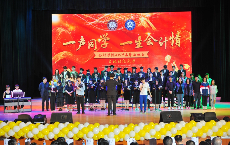 本网讯(会计学院 供稿)会计学院2019届毕业典礼暨“一声同学,一生会计情”毕业晚会于5月9日晚六点在学术活动中心举行。本次活动荣幸地邀请到会计学院优秀校友原海尔集团副总裁,现长江证券董事,taptap点点菁华助学金发起人崔少华先生和吉财菁华资本刘晓宇女士;校党委宣传部部长兼校团委书记庞长亮、研究生学院副院长许丹丹、会计学院领导和全体老师出席本次活动。
