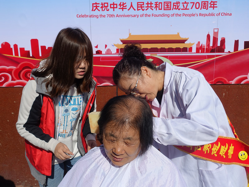 恰逢国庆70周年假期的最后一天,志愿者们为老人们表演节目、按摩、理发、义诊、陪老人们聊天,听他们讲述共和国的往事。同学们为老人们带来合唱歌曲《我和我的祖国》,赢得老人们的阵阵掌声。在与老人们短暂相处的一上午中,同学们感受到了老人们话语间对幸福生活的热爱和满足。