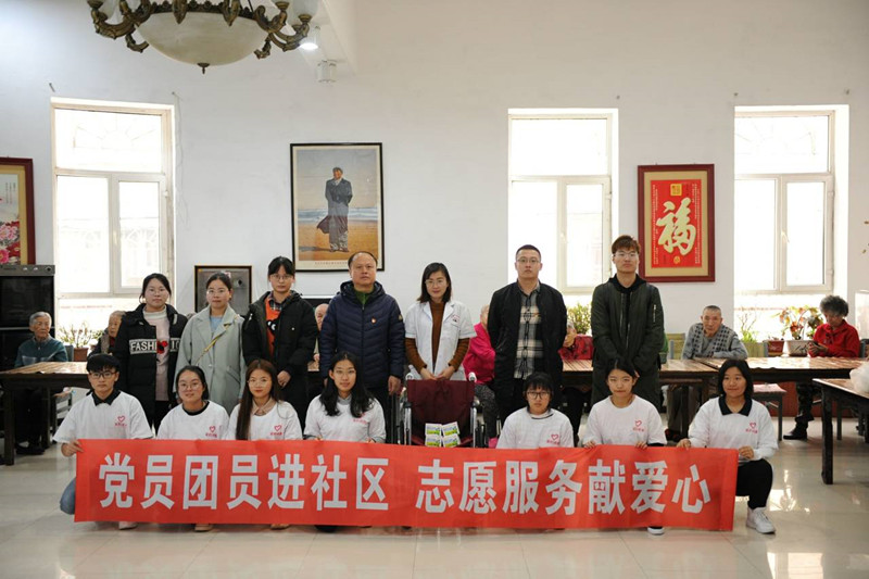 学院用爱心基金为老年公寓购置捐赠了轮椅和常用药品。大家为老人们带来了精心准备的合唱歌曲《红旗飘飘》、新疆舞蹈等歌舞节目,来到房间和老人们唠家常、话生活,倾听老人们讲述自己的亲身经历与生活情况。在短短几个小时的陪伴中,老人们的阵阵笑声就是对志愿者们最好的激励,老年公寓里处处洋溢着温馨和谐的气氛,临别前老人们依依不舍为孩子们送行。