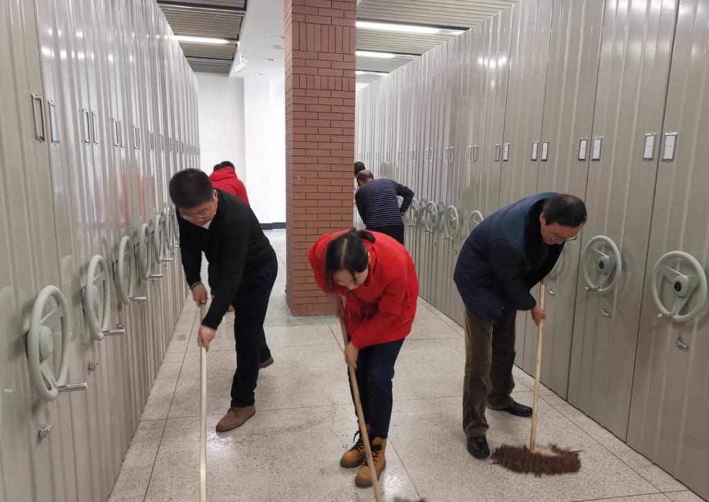 本网讯(图书馆 供稿)11月7日,图书馆直属党支部以支部为单位开展义务劳动,清扫图书馆一楼密集书库,这是图书馆直属党支部落实“不忘初心、牢记使命”主题教育的“九个一”“至少办一件实事好事”实践行动。