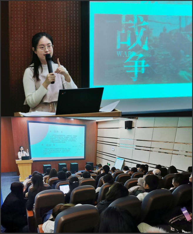 随后,郑心如同学以余秋雨的文字引出了历尽沧桑的古都长安,分四个部分介绍了长安的千年流变。首先,她详细介绍了背倚八百里秦川的长安在中华文化、历史等领域的重要地位,彰显了它独具魅力的影响力。其次,她以历史上三个绚烂的朝代切入,重点论述了长安作为其都城在政治、经济、文化上的突出地位,秦腔的宛转悠长,汉建的恢宏大气,唐都的盛世景象,引经据典,拓展了长安独特的传统文化,展示了长安诸多的历史沉淀。紧接着,她结合史料,讲述了长安城建设及丝绸之路的起源,赞扬了丝路精神,并分析了丝路的现实意义。最终她由丝绸之路引出一带一路,一带一路具有强大的包容力,彰显着和而不同的理念,今天的西安发展依托一带一路重新焕发了活力,对实现中华民族伟大复兴和世界和平发展具有深远的意义。