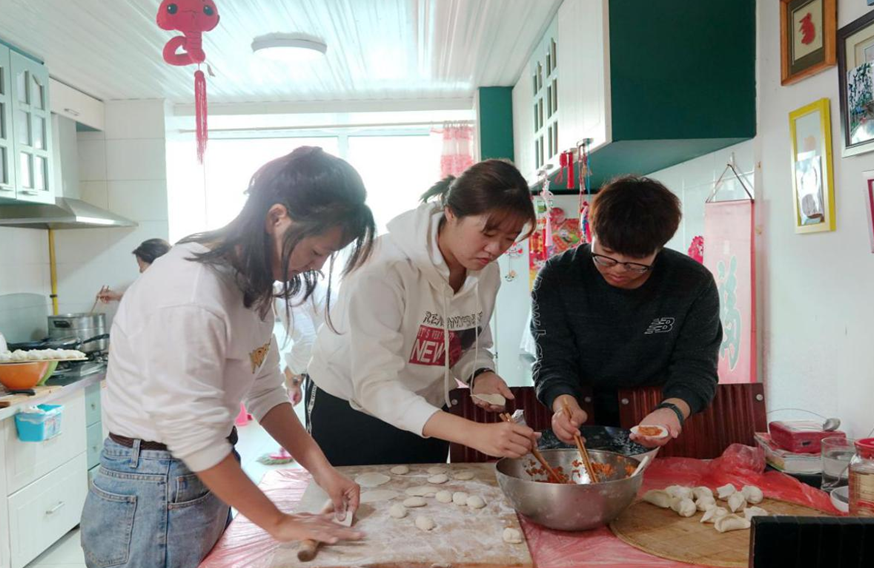 10月22日,离退休党总支副书记兼副处长王淋、统计学院团委书记郭妍、研究生助管刘家彤及学生志愿者,来到退休的温波老师家打扫卫生,做了一些力所能及的家务。志愿者们的劳动,让房间焕然一新,温老师很受感动。中午,温老师准备了丰盛的午餐,和大家一起洗菜、拌馅、擀皮、包饺子,其乐融融。温老师爱人去世早,只有一个儿子在北京工作。她说看到同学们,就像看到自己的孩子一样,非常高兴。同学们也都称温老师为温妈妈。