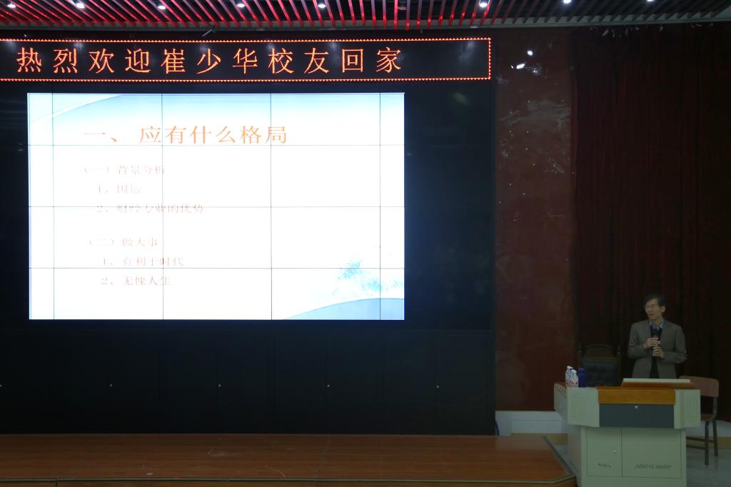 本网讯(亚泰工商管理学院 孙绮)为给学院学生搭建一个与优秀校友交流的平台,促进同学们对职场相关信息的深入了解,科学指导学生进行未来人生规划,引导同学们树立正确的人生观、价值观,亚泰工商管理学院特邀1978级校友崔少华先生于2019年11月17日上午在1201报告厅召开了以“树立格局,规划人生,做好准备”为主题的校友报告会。亚泰工商管理学院党委书记李福平、院团委书记李萍、2019级辅导员郭旗出席本次报告会,报告会吸引了我院各年级学生的积极参加。