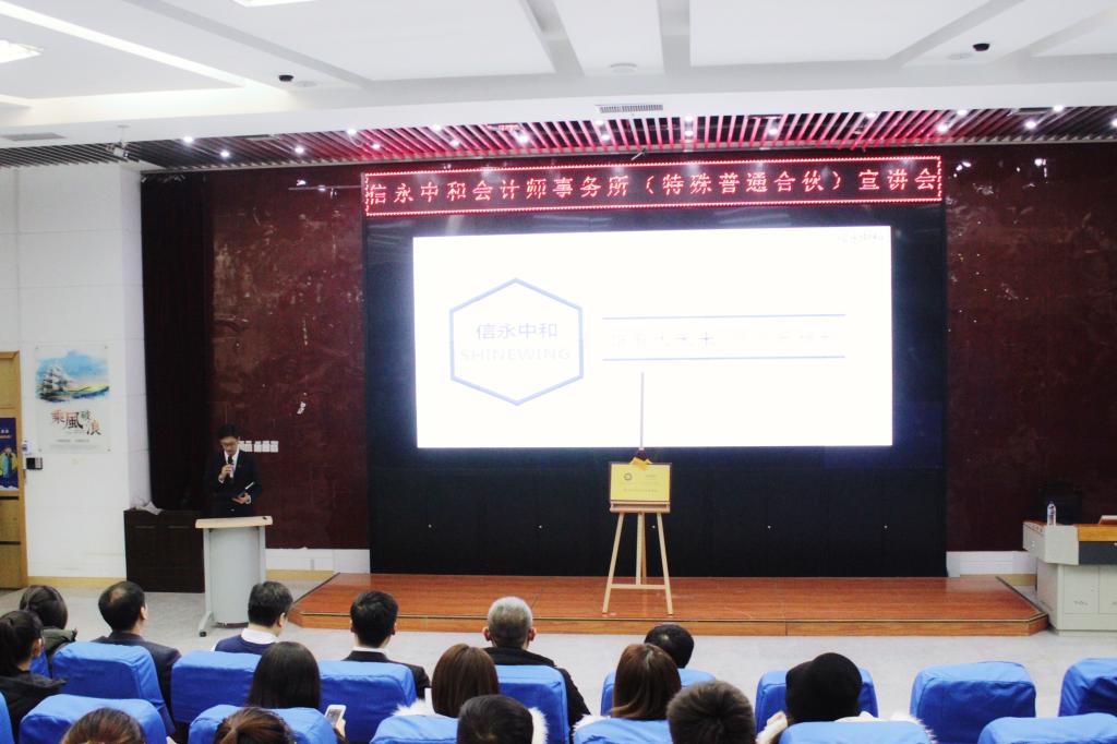 首先由张宗生先生以及会计学院梁毕明老师进行签约仪式。接着由张宗生先生、陈凤东先生和徐克哲老师进行揭牌仪式。通过本次签约合作,希望信永中和会计师事务所与会计学院以签约挂牌为契机,根据各自发展需要共同商定更加详尽的合作方案,进一步发挥各自的优势,努力在包括实习就业、实践基地、横向课题合作等多个领域取得更加丰硕的成果。签约会后,由信用中和会计师事务所张宗生先生等进行企业宣讲和介绍,让与会同学深入了解信用中和会计师事务所的文化、管理、业务范围等。(审核人 梁毕明)
