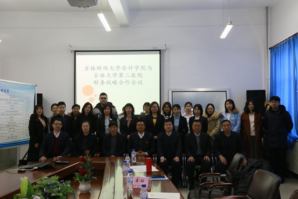 本网讯(会计学院 供稿)为了开发科研创新领域,扩大实习实践交流平台,12月24日,会计学院与吉林大学第二医院在会计学院会议室举行了财务战略合作协议签约暨联合培养实践基地揭牌仪式。会计学院李金富书记、梁毕明院长、王丽南副院长、崔英波老师及吉大二院总会计师王大庆、就业服务中心总经理田学兵、财务部主任刘宇航等经管系统各部门主任和第一批实习生出席了本次会议。