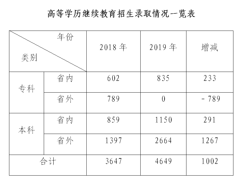 本网讯(继续教育学院 供稿)2019年,教育部和吉林省教育厅先后做出了取消和压缩高等学历继续教育专科专业设置的决定。面对如此不利的情况,在学校领导的大力支持下,经继续教育学院和函授站的共同努力,圆满完成了2019年度8个省区4649人的高等学历继续教育招生录取工作(详见一览表)。