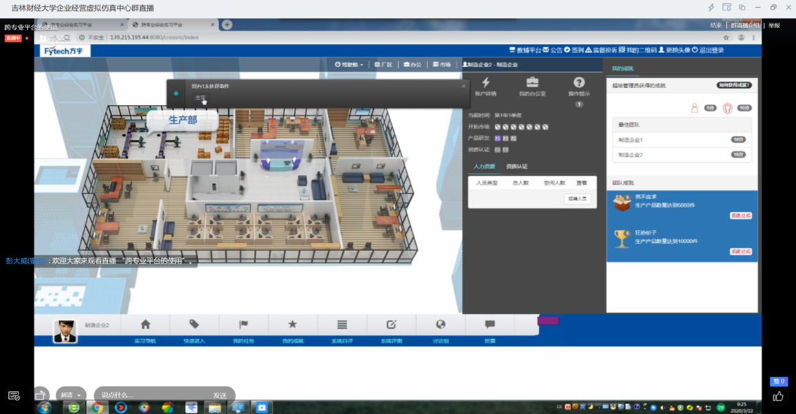经过为期三周的系统安装调试、网络承载能力测试和毕业生完成实习情况摸底调查,线上实训于3月23日开始启动。实训分6期进行,每期5天,起止时间为3月23日至4月30日,预计参加毕业生人数约1100人。课程内容沿用近几年线下替代实习使用的跨专业综合实训课程。信息管理中心12名指导教师全程在线指导,组织学生在以真实商业社会环境为原型的虚拟仿真环境中,通过分别担任总经理、财务主管、营销主管等角色,开展以企业经营与管理为主体的仿真经营和业务运作,达到让学生真实地体验无法接触的场景、参与无法承担的角色、综合运用跨专业知识积累实践经验的教学目的。