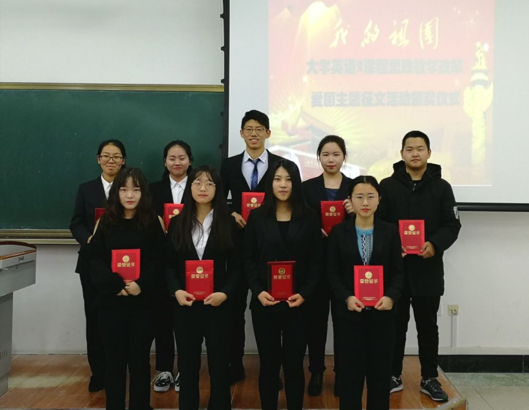 2019年是祖国70岁华诞,课题组依托批改网在2019年10月到12月间举办了“My Present for the 70th Birthday of My Country”《我为祖国70岁生日献礼》英语征文活动。活动得到了外语部全体教师的积极响应,在大一、大二两个年级中得到广泛的推广,课题组收到征文近千份。课题组采用机器阅卷与人工阅卷相结合的双评审模式,人工阅卷又采用了多人评阅取平均分的办法,最终评选出了一批文采飞扬、饱含深情的优秀爱国主题作品并给予了奖励。在众多选手中,崔涵、刘娴、肖池3位同学脱颖而出获得一等奖;王浩宴等5位同学获得二等奖;另有20位同学分别获得三等奖和优秀奖。征文活动大大提升了学生们的爱国意识和民族自豪感。