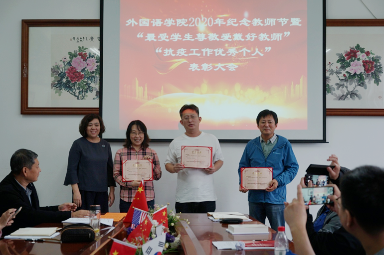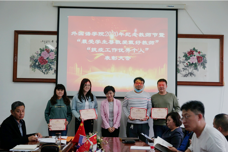 本网讯(外国语学院 周博)在第36个教师节到来之际,外国语院于9月9日召开了纪念教师节暨“最受学生尊敬爱戴好教师”、“抗疫工作优秀个人”表彰大会。