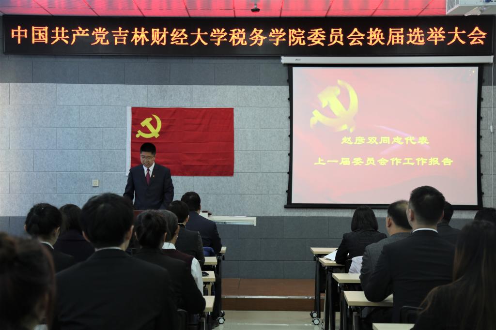 本网讯(税务学院 供稿)根据《中国共产党章程》《中国共产党基层组织选举工作条例》《中国共产党普通高等学校基层组织工作条例》等党内法规规定,按照《taptap点点体育基层党组织换届选举工作实施方案》要求,11月4日14:00,税务学院在逸夫教学楼2211教室举行了中国共产党taptap点点体育税务学院委员会换届选举大会,学院全体正式教工党员和学生党员64人参加了本次会议,税务学院院长张巍同志列席会议。学院上届党委青年委员苏扬同志主持大会。