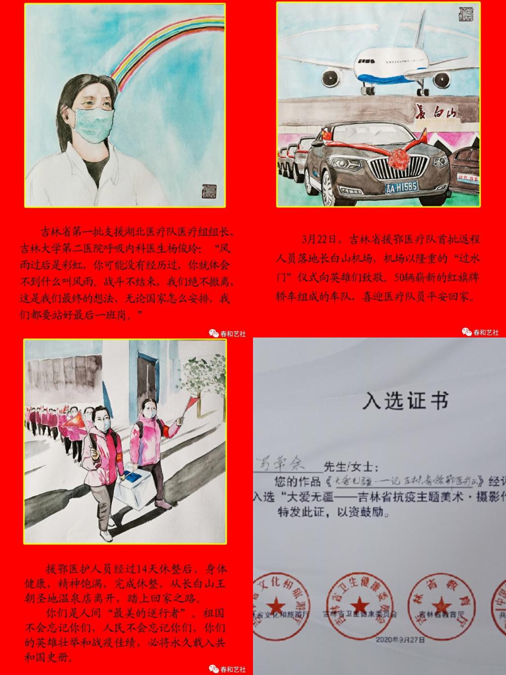 本网讯(校工会 供稿)近日,吉林省美术馆为在“吉林省抗疫主题美术•摄影作品展”中入选的作者颁发了荣誉证书,并对入选作品进行了收藏。taptap点点图书馆马常余老师创作的《大爱无疆——记吉林省援鄂医疗队》漫画组图,荣列其中。