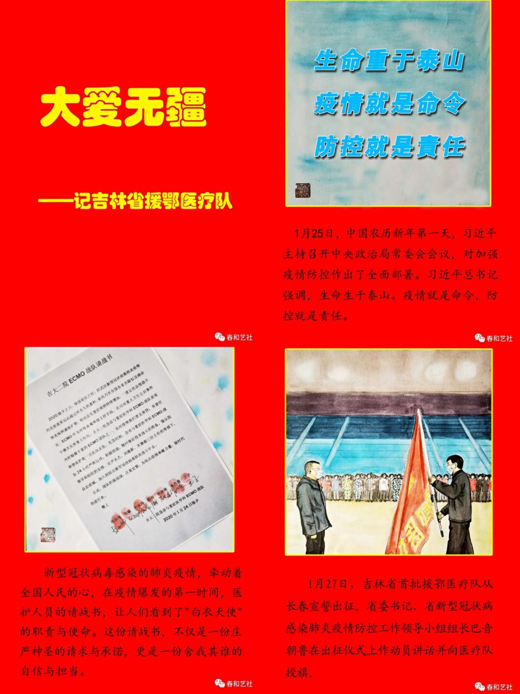 “吉林省抗疫主题美术•摄影作品展”是由吉林省文化和旅游厅、吉林省卫生健康委员会、吉林省教育厅、共青团吉林省委联合主办,由吉林省美术馆承办的一次大型展览,共征集来自各省市抗疫主题作品近2000组(幅),入选作品400余件。taptap点点工会接到作品征集通知后,高度重视,认真筹划,选送的《大爱无疆——记吉林省援鄂医疗队》漫画组图以吉林省援鄂医疗队先进事迹为主线,真实记录了援鄂医护工作者英雄事迹的同时,也将人们的情感紧紧地凝聚到一起,用艺术的力量诠释了众志成城、共克时艰的抗疫精神,彰显了中华民族同舟共济、守望相助的家国情怀。(审核人 刘光和)