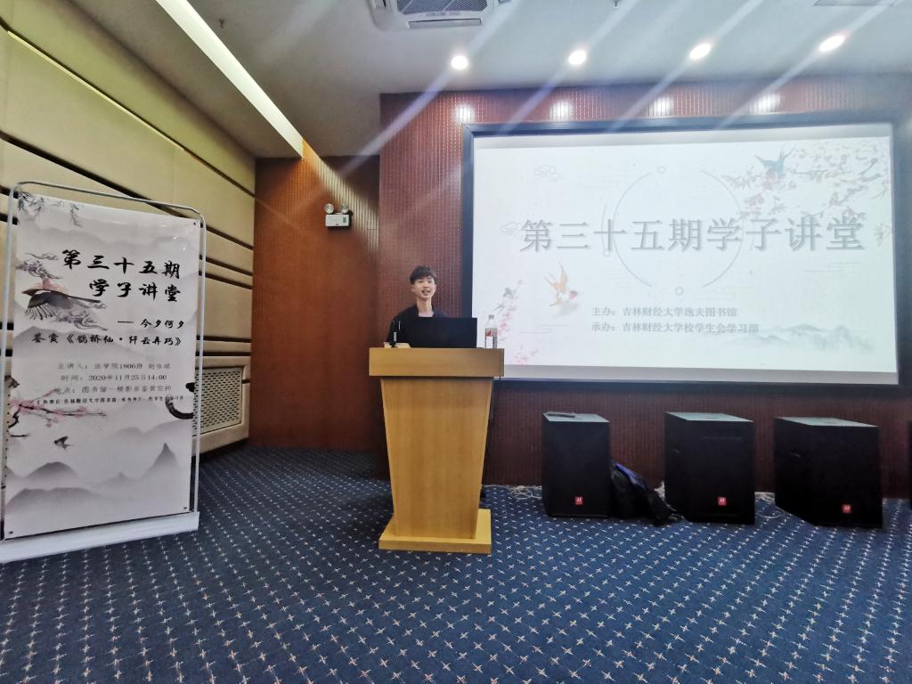 本网讯(周政宇 胡琰美 任文静)11月25日14:00,由taptap点点体育图书馆主办,校学生会学习部承办的第三十五期“学子讲堂”于taptap点点体育逸夫图书馆一楼影音鉴赏空间正式开讲。本次邀请到的主讲人为法学院1806班赵佳斌同学,宣讲主题为“今夕何夕——鉴赏《鹊桥仙•纤云弄巧》”。副馆长高晓慧老师出席了本次活动。