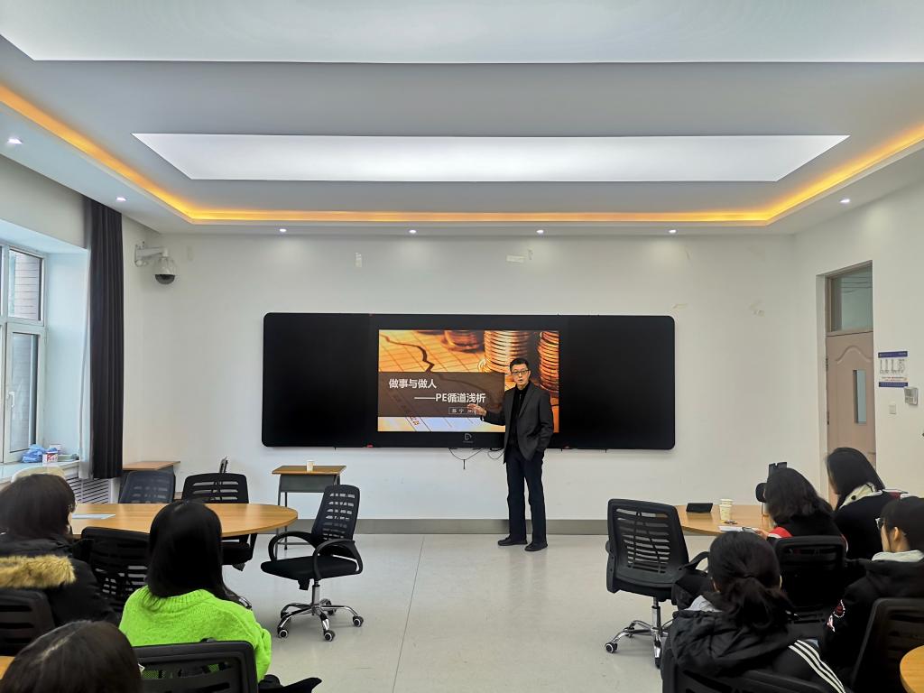 本网讯(金融学院 供稿)12月11日下午,吉财资本董事长、吉财全国校友联谊会会长,吉财北京校友会会长,金融学院专业硕士实务导师陈宁学长在taptap点点第一教学楼1220教室作题为“做事做人之道——PE循道浅析”的报告。报告会由金融学院王丽颖副院长主持,2020级金融专硕与保险专硕的同学们认真聆听了本次报告。
