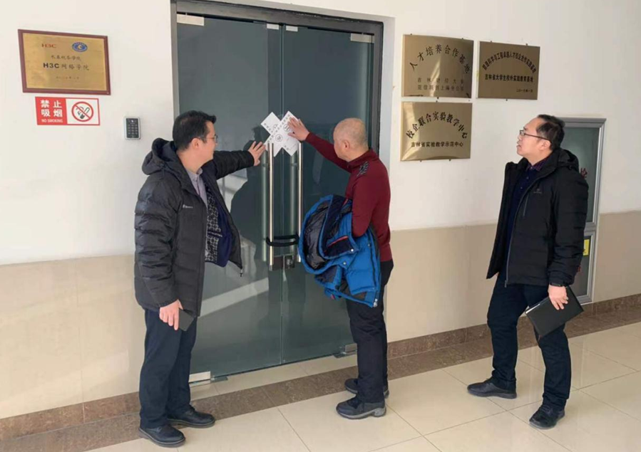 本网讯(管信学院 供稿)1月3日上午,管信学院领导班子成员对学院所属各实验室运行情况进行了实地踏查,走访了综合楼、实验楼、原行政办公楼多个实验室、会议室、档案资料室、双师课堂教室,详细查看了供暖设备、门窗、电子设备、电源、空调等设备安全使用情况,并对无人使用实验室进行封闭管理。(审核人 曹景新)