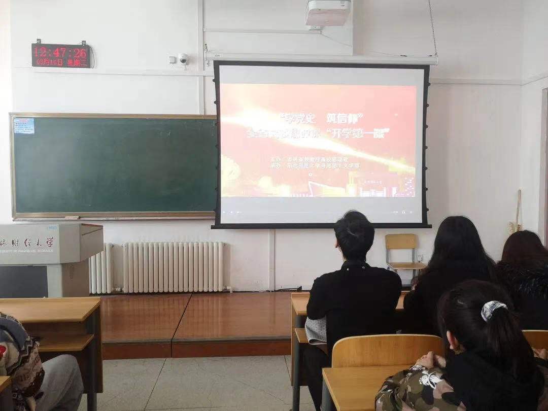 税务学院全体学生观看了“学党史•筑信仰”全省高校思政课“开学第一课”,并于3月16日下午在一教1441教室由团委老师和部分学生代表开展了“学四史”座谈研讨会。