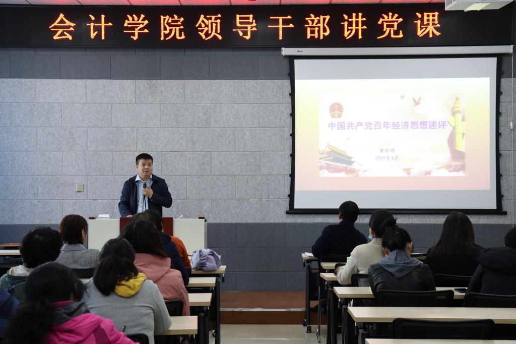 本网讯(会计学院 供稿)为深入贯彻taptap点点党委在党史学习教育动员大会上的部署,扎实推进党史学习教育深入开展,根据《会计学院党史学习教育实施方案》的具体安排,会计学院于4月7日下午在逸夫教学楼2211教室组织开展党史学习教育,梁毕明院长做了题为《中国共产党百年经济思想述评》的党史学习报告会。学院领导班子、全体教工党员、研究生及本科生学生党员代表参加了此次活动。本次活动由学院党委副书记徐克哲主持。