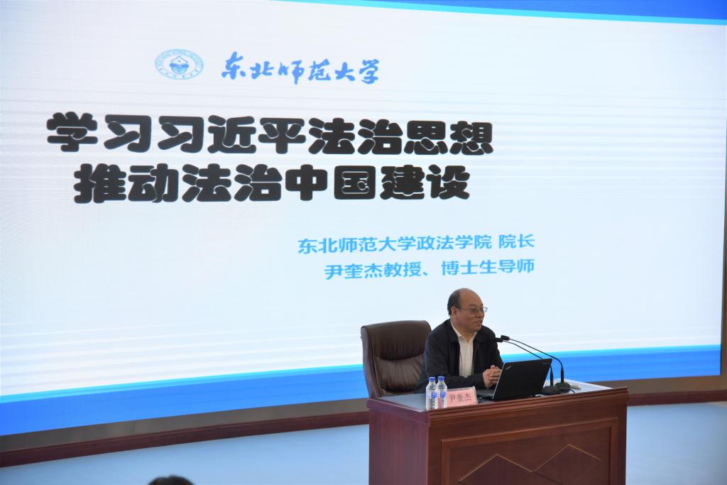 此次专题讲座,尹奎杰教授细致阐述了习近平法治思想于中国法治化进程及国家治理体系现代化中所彰显的重大意义,习近平法治思想形成的发展脉络、确立的时代背景,在此基础上,尹教授述及习近平法治思想的核心要义及实践要求,特别是对中华优秀法律文化的推动与弘扬作用。