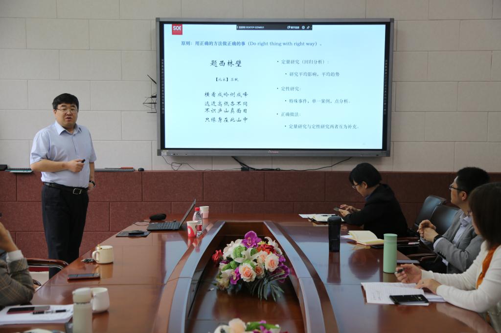 本网讯(统计学院 供稿)5月28日上午,应统计学院、统计咨询与大数据研究重点实验室、经济运行研究中心邀请,复旦大学李楠教授在综合楼145做了 “社会科学量化研究论文写作与发表”的主题报告。会议由统计学院院长李国荣教授主持,统计学院青年教师和研究生参加了此次报告会。