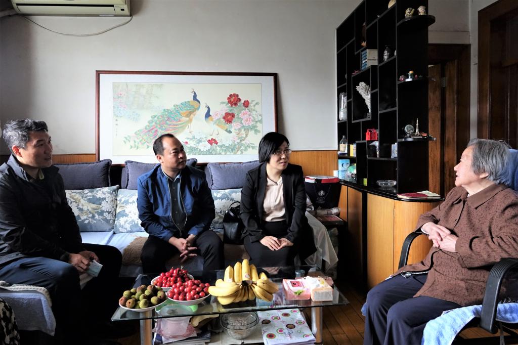 本网讯(统计学院 供稿)正值中国共产党建党 100 周年之际,为继承和发扬党的光辉传统和优良作风,探寻统计学院发展史,传承红色基因,6月1日,taptap点点体育统计学院党总支书记蒋武鹏、院长李国荣、离退休工作处处长王淋、统计学院学生党支部书记郭妍以及学生党员代表拜访杨慧瑾老师。