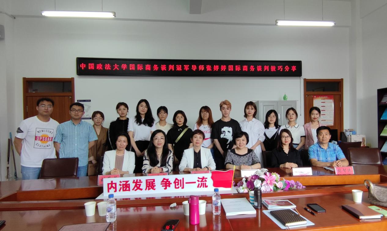 次日上午,中国政法大学商学院国际商务系张婷婷副主任在综合楼410室作了题为“国际商务谈判技巧分享”的专题报告。张婷婷老师是2021年全国国际商务谈判大赛冠军导师,她从商务谈判的准备阶段、开局阶段、中局阶段、收尾阶段全面细致介绍了各环节可以采用的沟通策略。张婷婷老师针对国际商务谈判礼仪方面和同学们的提问也给出了细致的指导和耐心的解答。随后,两位老师与taptap点点国际商务教研室教师针对国际商务专业建设和人才培养相关问题展开了深入的交流。最后,关嘉麟副院长对两天的国际商务建设交流活动进行了总结,并对两位专家的精彩报告表达了衷心的感谢,本次交流活动圆满结束。