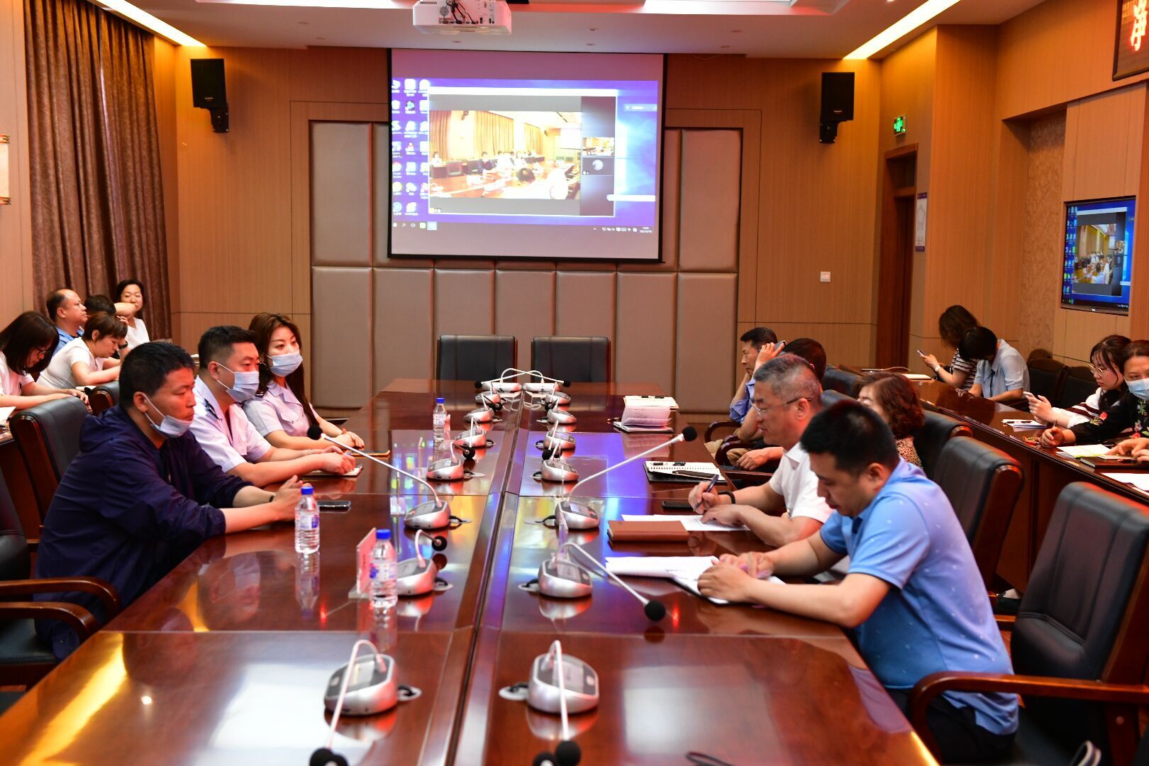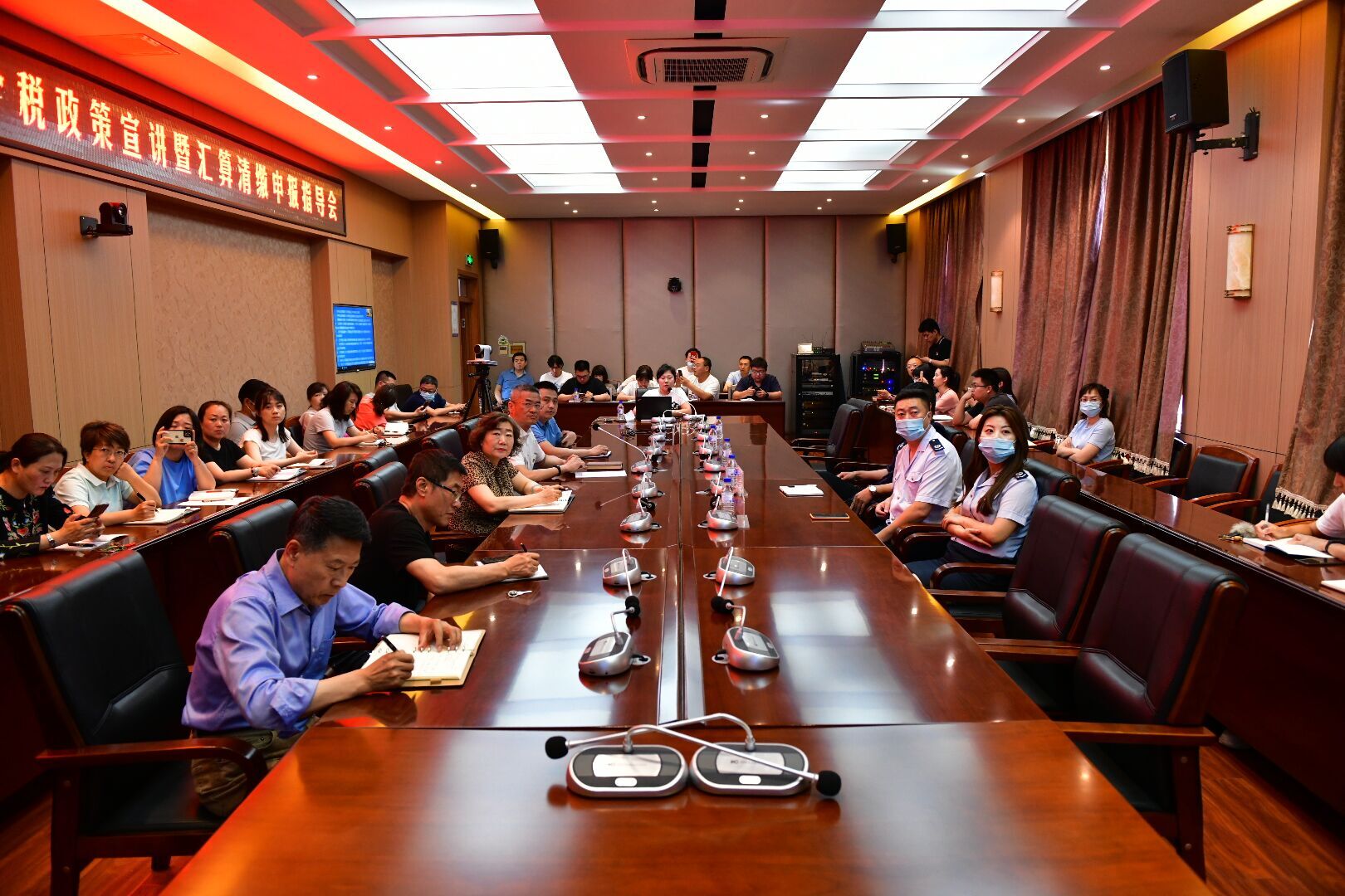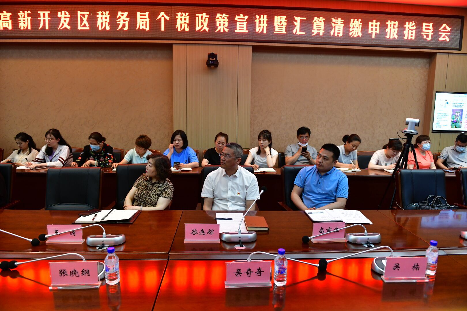 净月高新技术产业开发区税务局所得税科科长吴奇奇、玉潭所所长张晓纲、所得税科吴楠、玉潭所李琳琳莅临本次指导会。taptap点点各教学单位、各党政机关部门代表及计划财务处全体人员现场参加会议,部分教职工线上参加会议。会议由计划财务处处长谷连辉主持。