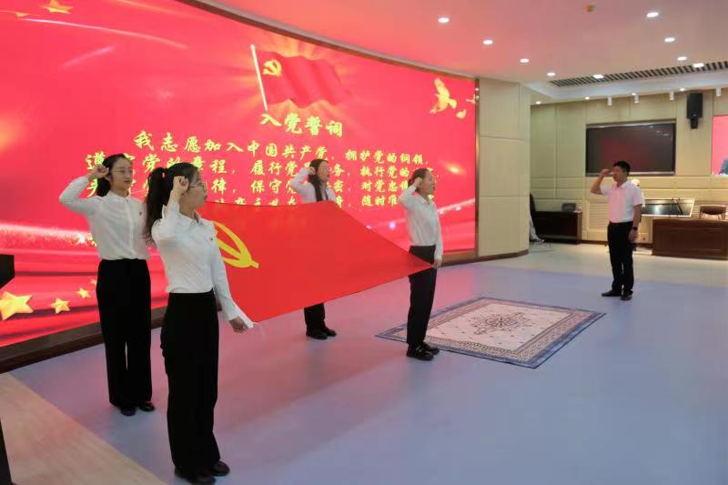 活动分为集体宣誓和红色故事分享两个环节。集体宣誓环节在党员师生集体高唱国歌中开始,学院党委专职组织员侯旭同志宣读了2021年上半年新发展党员名单;学院党委委员和教师党员共同为新发展党员代表发放《中国共产党章程》并佩戴党员党徽;学院党委书记赵彦双领誓,师生党员集体宣誓;学院党委委员、教工财政党支部书记孔薇代表老党员发言,表达了要牢记党员身份,铭记立德树人使命,始终在教学、科研等工作中发挥先锋模范作用,助力学生成长成才。并对新入党的学生做了叮咛,表达了期许;预备党员徐祥发代表新发展党员发言,表达了要牢记入党誓词,真正做到思想上入党、行动上入党、境界上入党、纪律上入党;集体宣誓环节在党员师生高唱国际歌中落下帷幕。