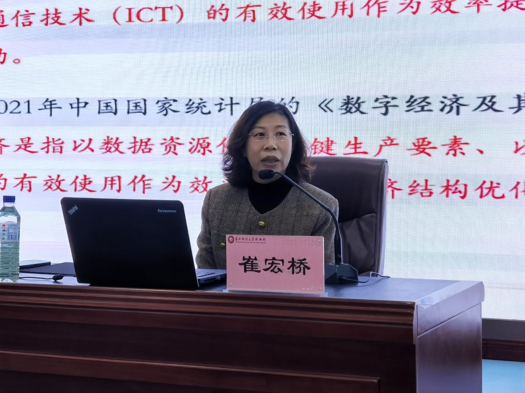 报告会上,崔教授从数字经济发展实践、数字经济带来的管理创新和数字经济相关研究思考三个方面展开论述。她首先围绕数字经济的概念界定、特征与体系架构对数字经济的内涵和外延做了细致的解读,并通过分析数字经济发展规模、内部结构和全要素生产率方面的数据,总结了我国数字经济发展现状及对全球数字经济发展的贡献。然后通过分析当前数字经济发展实践中存在的问题,阐述了数字经济背景下的管理创新与企业数字化转型的关系,提出实施数字战略是数字经济时代企业的必然选择和未来发展方向,并详细阐述了企业实施数字战略依赖的关键要素:数字资源、数字能力、数字化组织及数字生态系统的构建。最后,她基于前述的分析及相关领域研究现状,认为数字经济赋能实体经济、数字治理、数字生态系统构建等将是未来的研究重点。