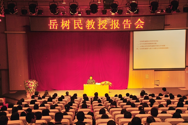 岳树民教授长期从事“财政税收”的理论研究。报告会上,岳树民教授从“结构性减税及其作用目标”、“近年结构性减税的实践”、“正确认识结构性减税问题”、“结构性减税与建立功能完善的税收制度”四个方面对结构性减税问题进行了深入解读,并对税制优化问题提出了独到的见解。岳树民教授指出,结构性减税是一种“有增有减,结构性调整”的税制改革方案,是为了达到特定目标而针对特定群体、特定税种来降低税负水平的税制改革。结构性减税不是普遍减税,是选择性减税,是一种有增有减,适当减税前提下的税制结构性调整的税制改革。通过结构性减税能够促进投资和消费,拉动经济增长,调整国民收入分配格局,提高居民收入水平,促进收入公平分配,推动经济运行中结构、机制的优化,缓解财政压力,应对庞大的财政支出需要有利于形成科学发展的、功能完善的税收制度。