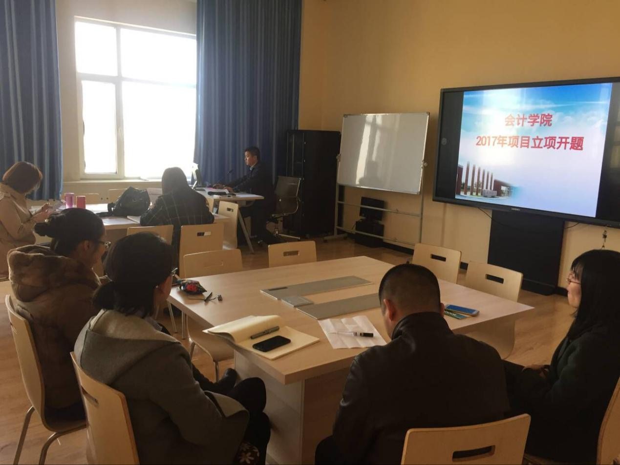 年10月25日中午12:00,会计学院在会计学院案例研讨室举行了2017年度立项科研项目集中开题报告会。项目开题工作由会计学院副院长梁毕明主持,参加本次会议的人员有:2017年度获得立项的纵向项目(含校级项目)课题组全体成员,学院院长,学科秘书和学院青年教师。