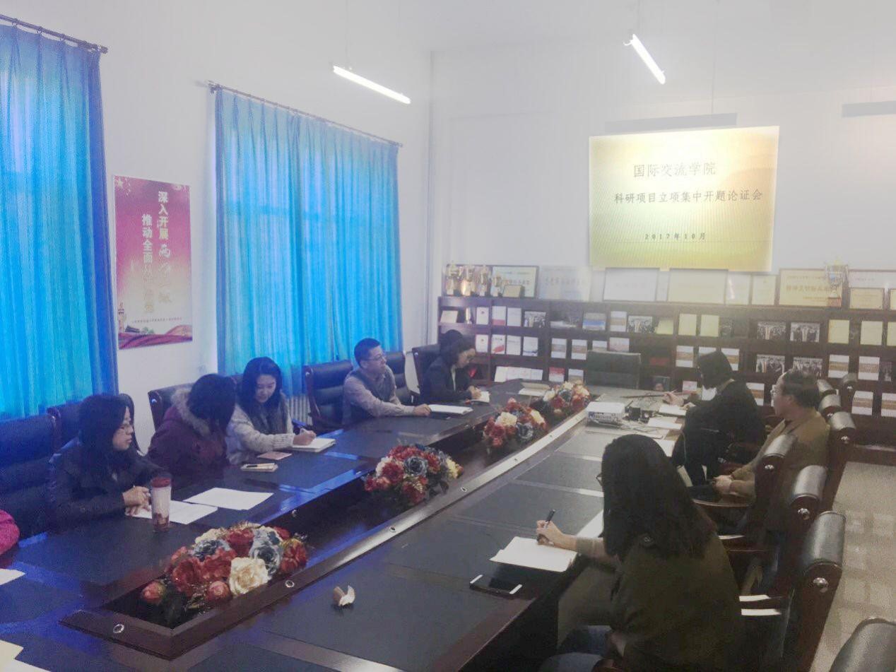 年10月18日下午,国际交流学院在学院会议室组织开展了2017年度科研立项项目集中开题工作。参与本次会议的人员有:张振华院长、李舸副院长和相关课题主要成员。此次开题的科研项目包括一项吉林省社科规划项目和一项校级博士基金项目。